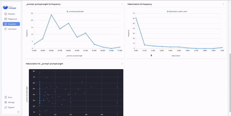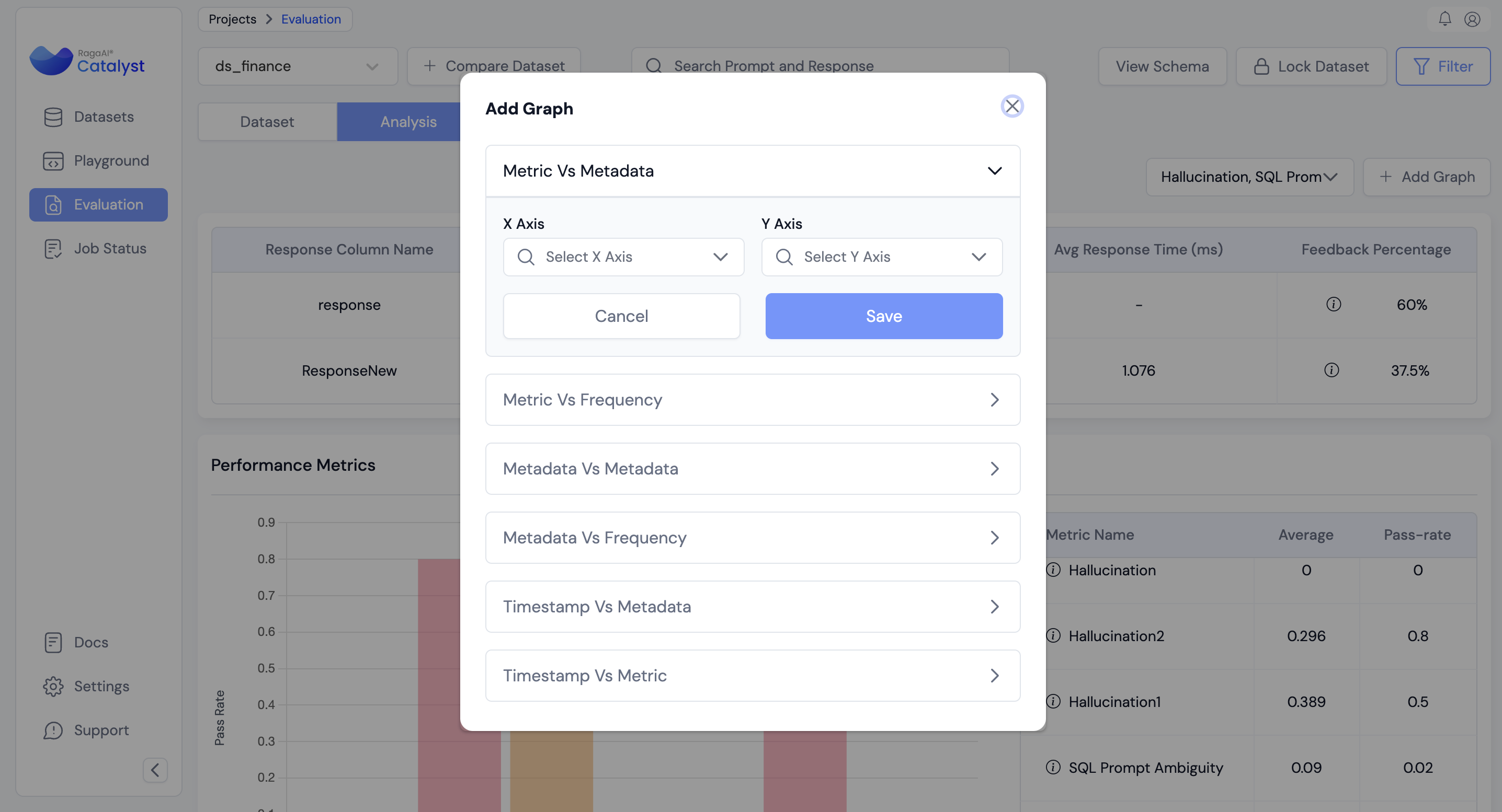 The **Analysis** section of the RagaAI Catalyst  provides powerful data tables and visualizations that help you evaluate the performance of your dataset. Here, you can explore insights, metrics, and graphs to better understand the results of your testing and experimentation.