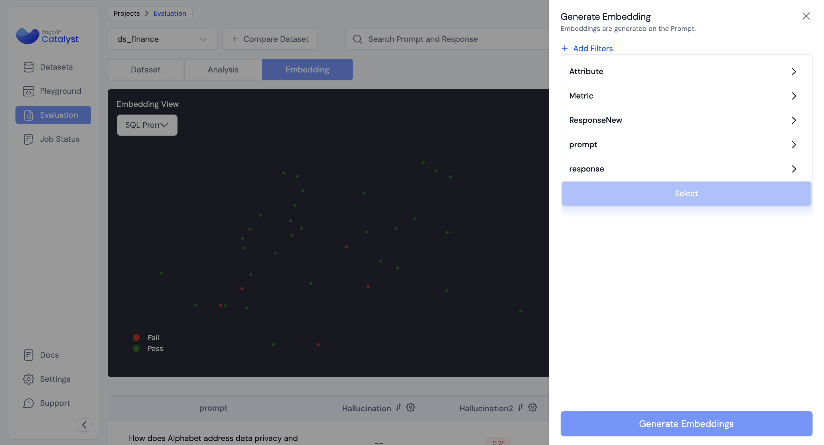 &#x20;The **Generate Embeddings** feature allows users to create embeddings for their dataset based on prompts. .