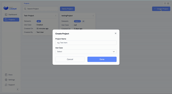1. Navigate to the **projects section** in RagaAI Catalyst.