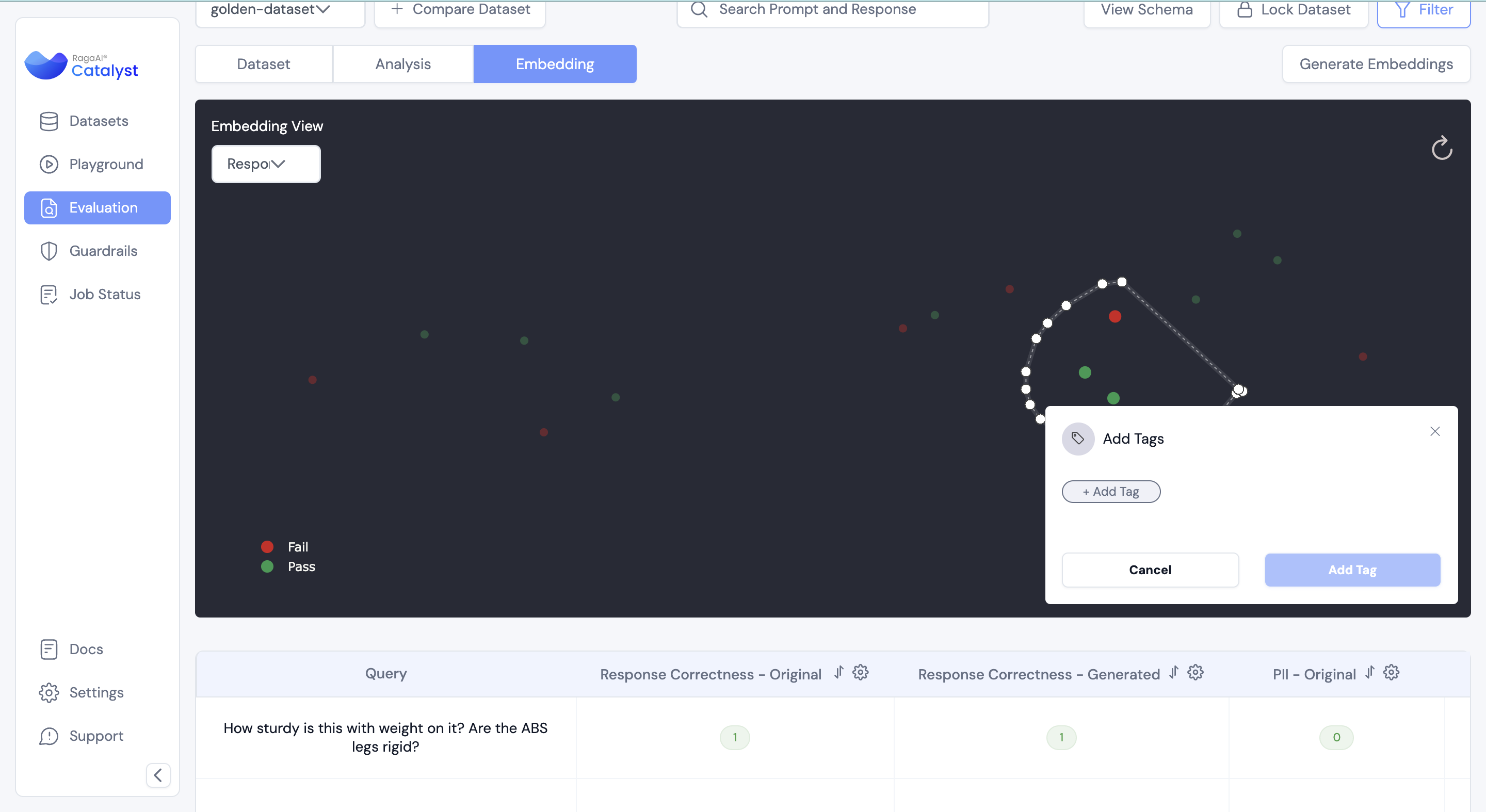 This guide provides an overview and step-by-step instructions for using the **Manual Tagging for Embedding Analysis** feature in Catalyst. This powerful tool allows users to create, manage, and analyze tags for data points in their embeddings visualizations, enhancing dataset organization and analysis.