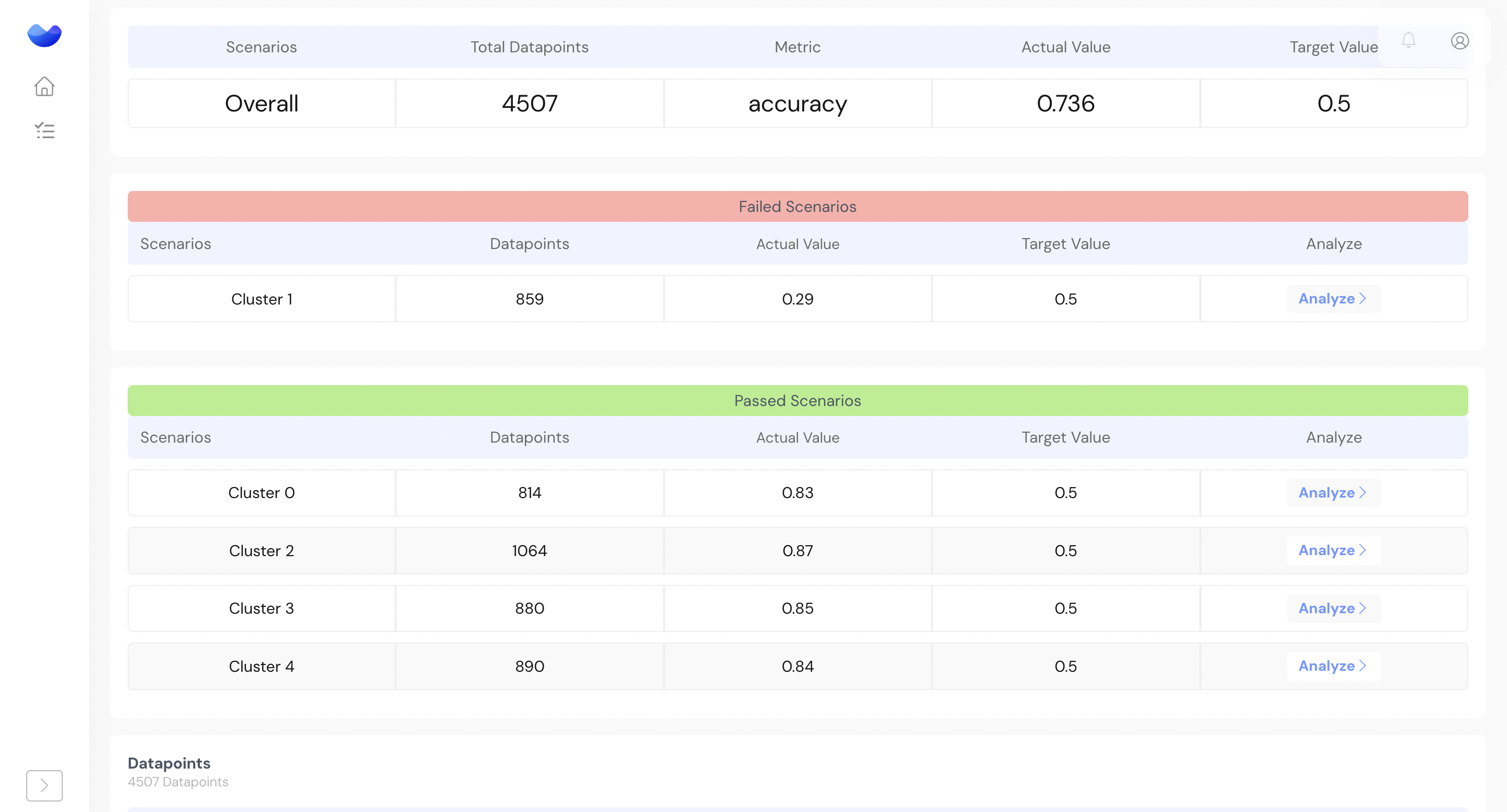 **Goal** - Identify scenarios where the LLM model performs poorly (below a set threshold) on the test dataset.