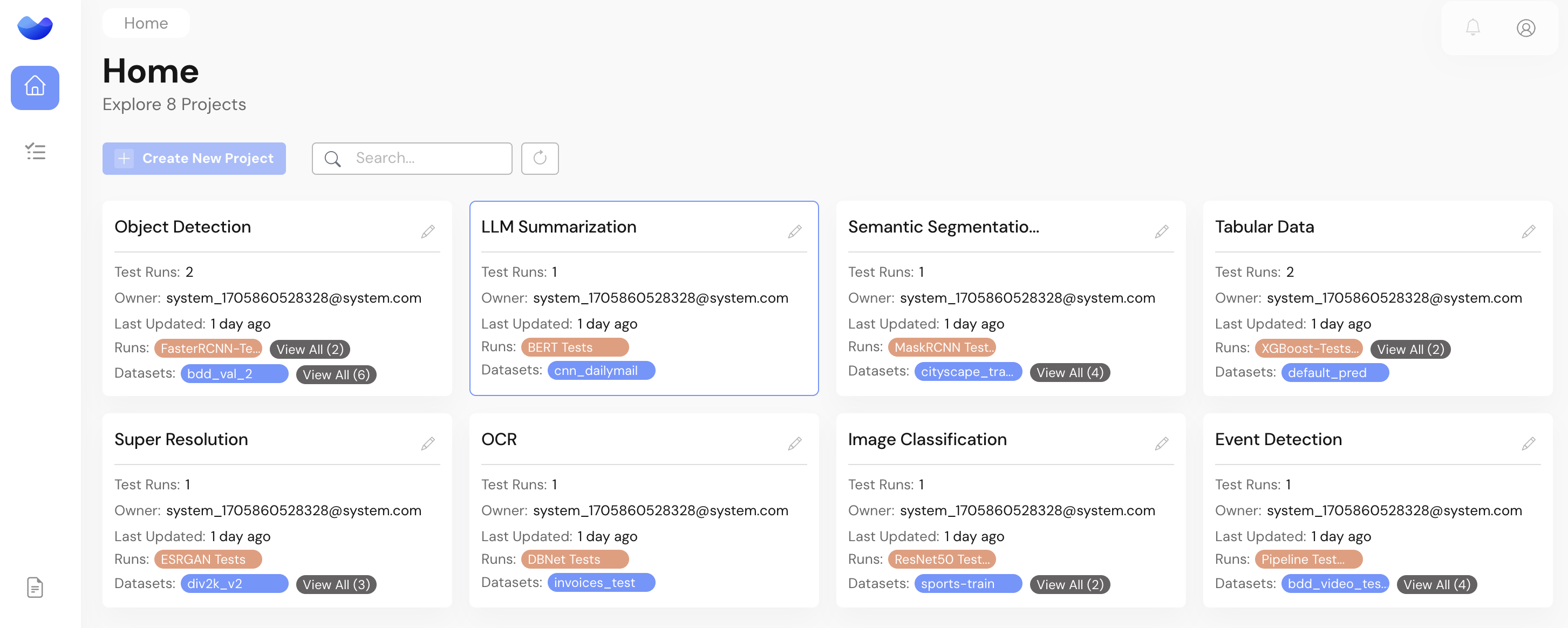 The LLM Applications on the sample workspace is an example of how the RagaAI Testing Platform can help with Model Quality Checks to identify performance gaps and perform regression analysis.